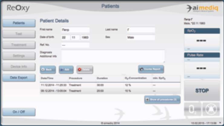 • Vào cuối mỗi lần xét nghiệm, quy trình và đợt điều trị, ReOxy tạo ra bản báo cáo tóm tắt dạng pdf.