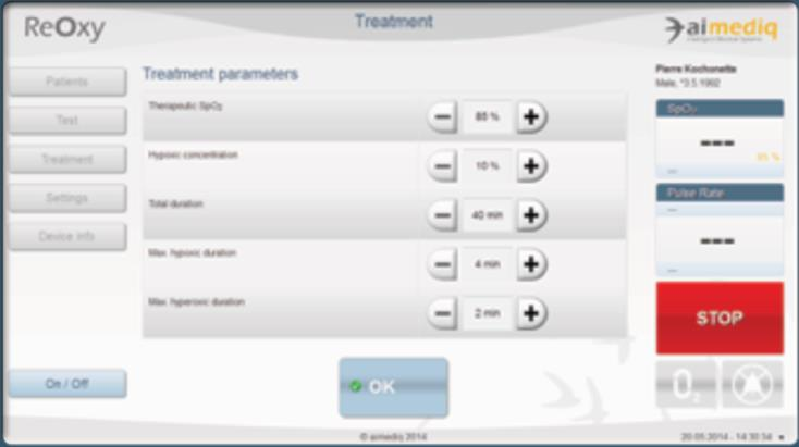 tình trạng giảm oxy huyết. Cường độ của các thông số điều trị thay đổi trong giới hạn đặt trước trong mọi quy trình.
